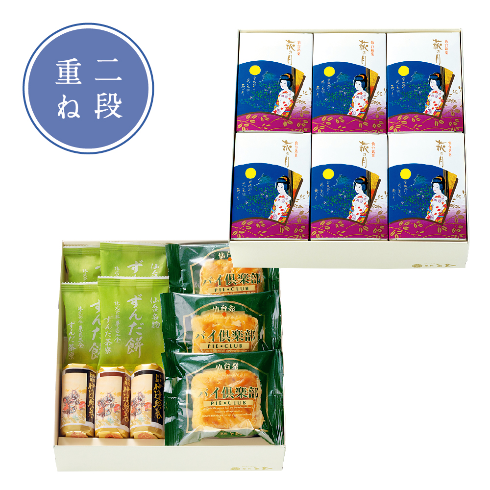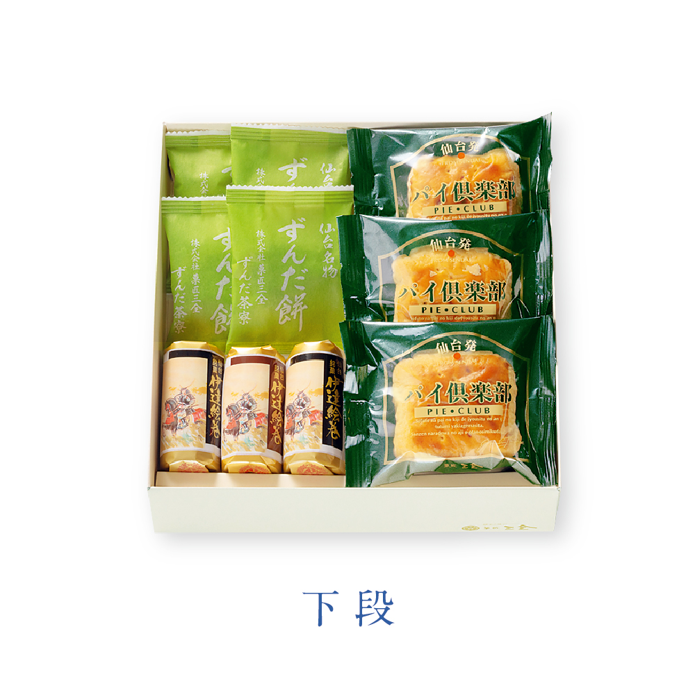 【下段】仙台名物ずんだ餅4個、伊達絵巻3個、パイ倶楽部3個