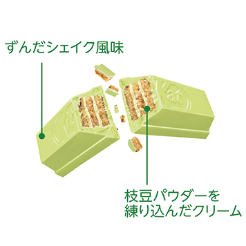 ずんだシェイク風味の生地で包みこむことで「ずんだシェイク」ならではの味わいを再現しています。