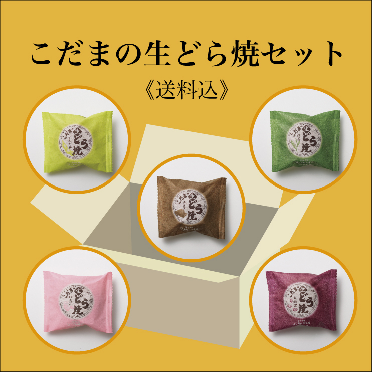 こだまの生どら焼5種類を一度に楽しめるオンラインショップ限定のセット。